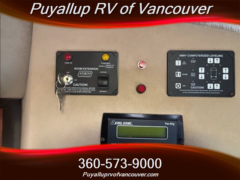 Power & Utilities: 4.0 kW Onan generator, 30-amp service, propane furnace, and hydraulic leveling jacks.