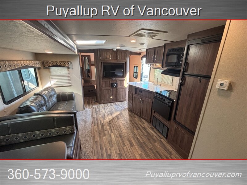 This bumper pull family sized lightweight bunkhouse is designed to be pulled by smaller full-size trucks or SUVs to get you, and your family out enjoying the outdoors all season. Contact our sales team at 360-573-9000 to schedule an in-person presentation today.