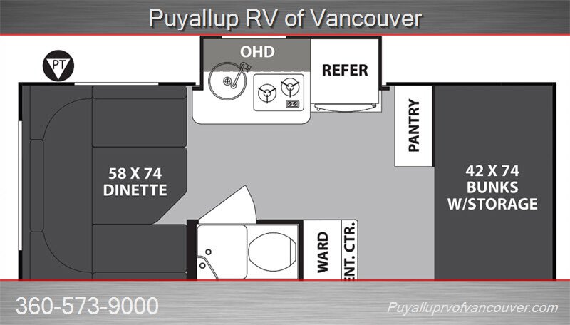 - Floorplan: Rear dinette / front bunks / center kitchen & bath